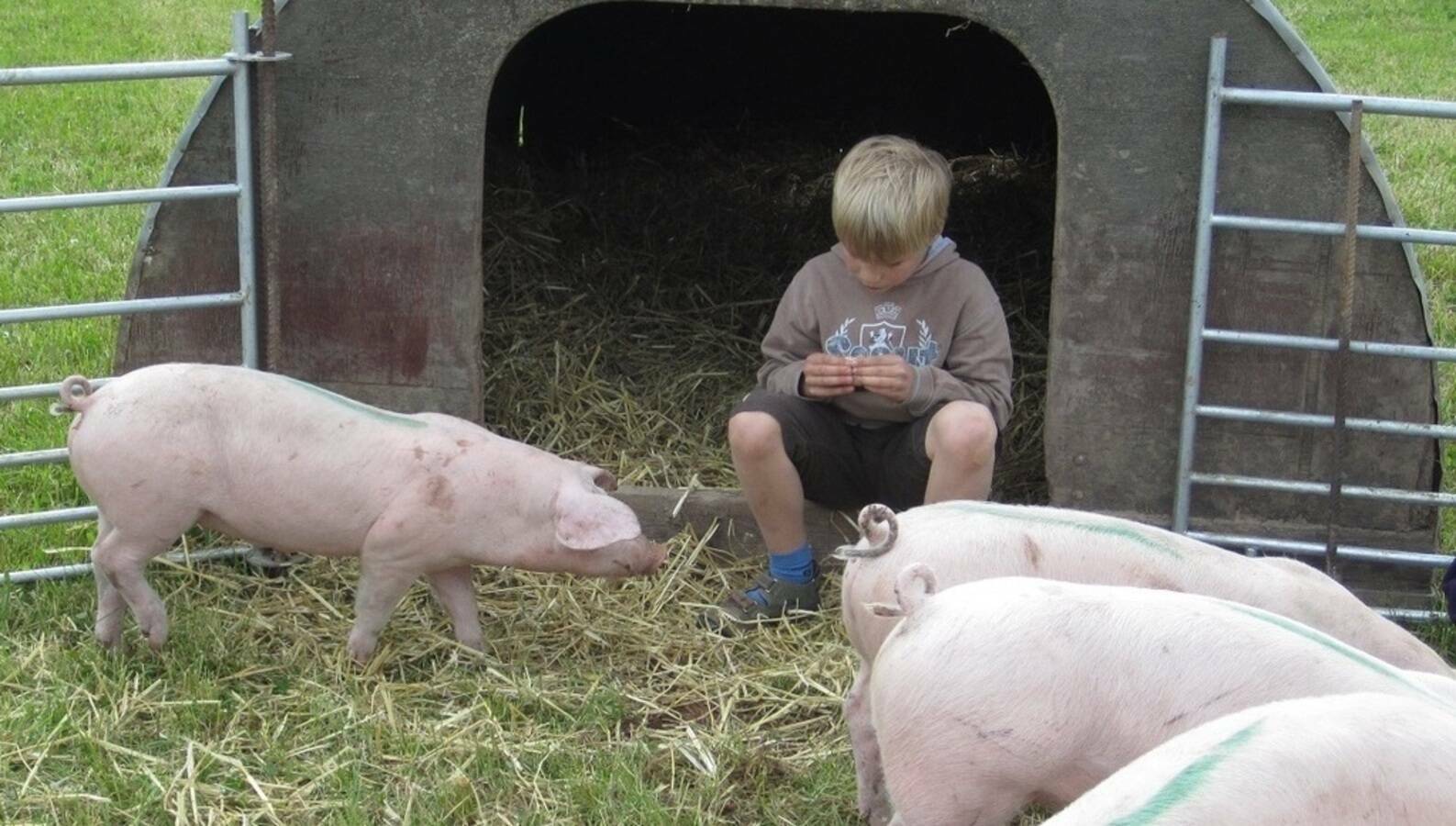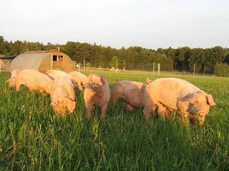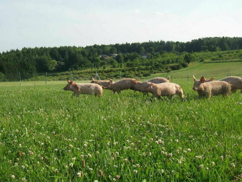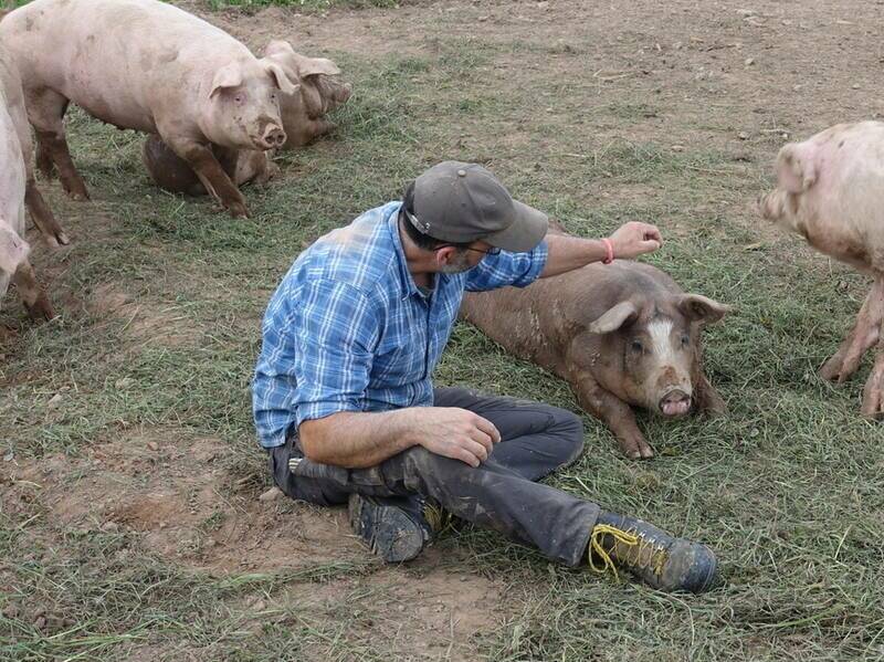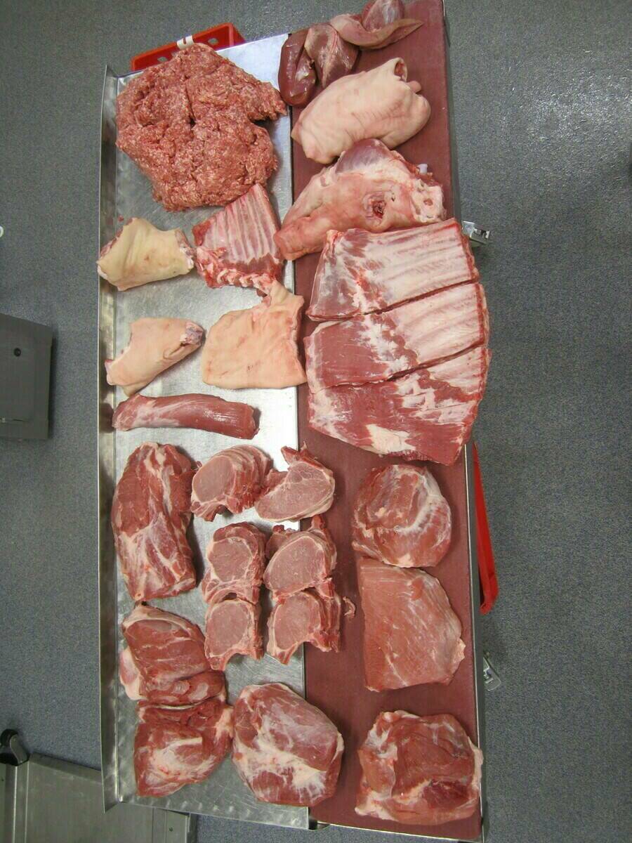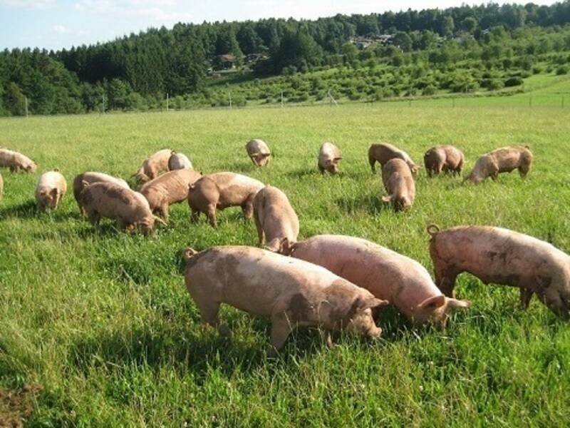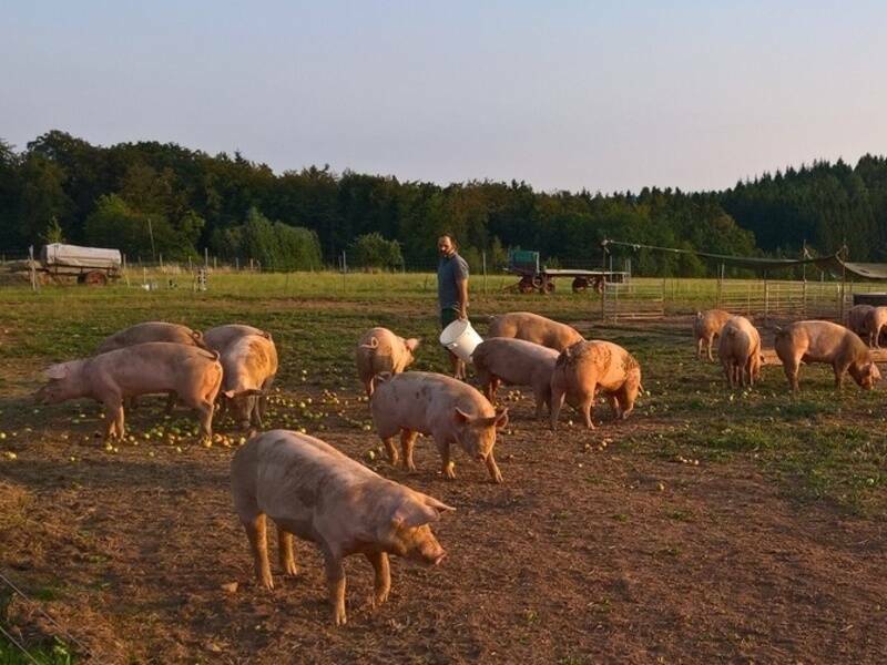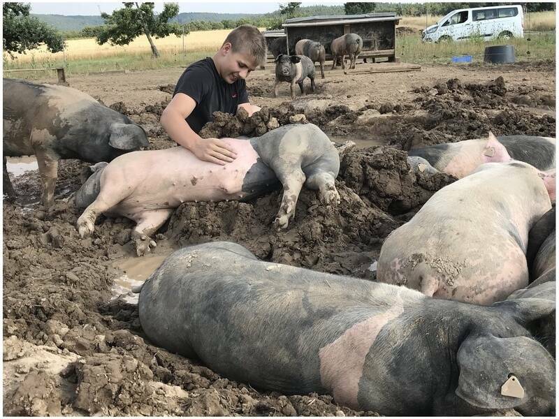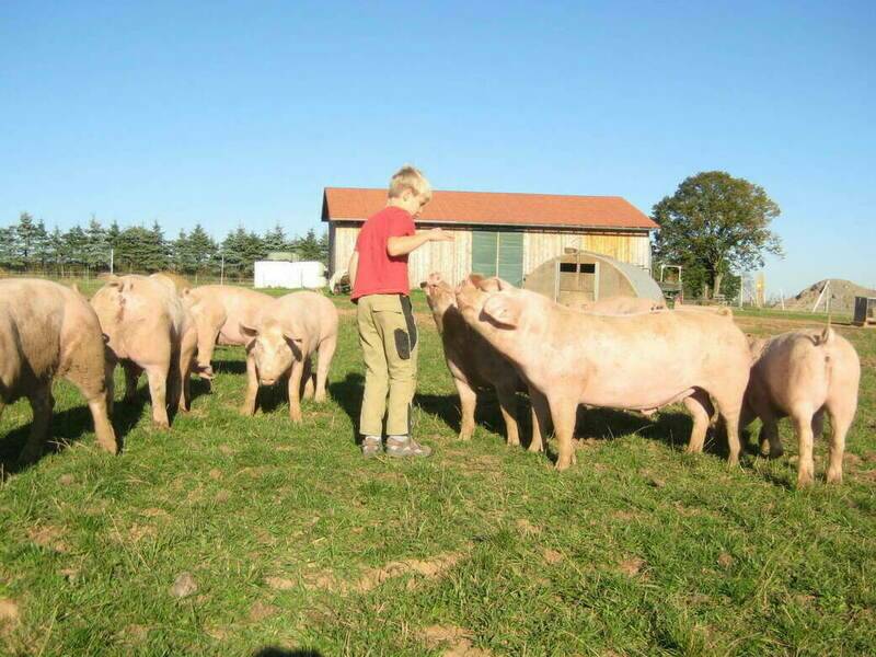 Unsere Schweine sind immer draußen, haben viel Bewegung - hat schonmal jemand eine Schweineherde galoppieren gesehen? - und werden streßfrei in einer kleinen Metzgerei vom Chef selbst geschlachtet!